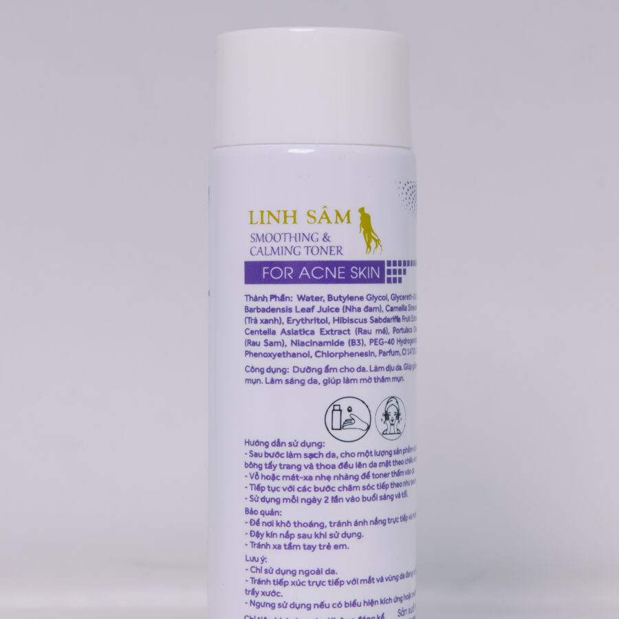Sau khi làm sạch da, dùng “SMOOTHING & CALMING TONER” để làm dịu và cấp ẩm nhẹ cho da.