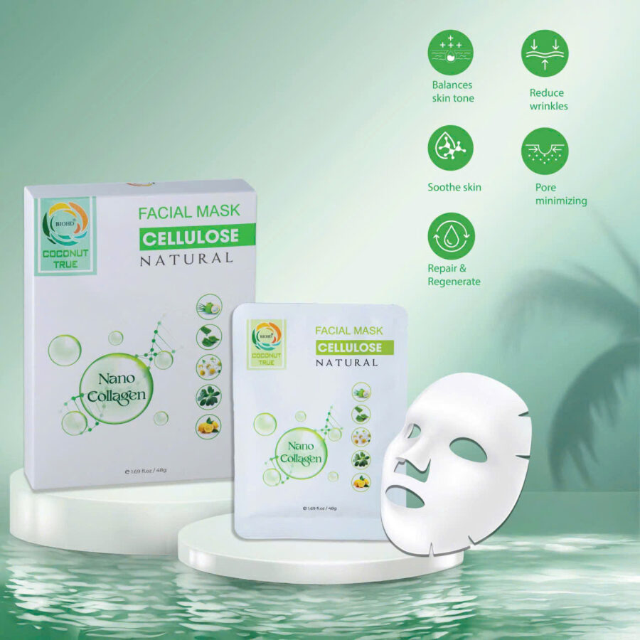 Mặt nạ BioHD Skin – Facial Mask là dòng mặt nạ cấp ẩm từ thiên nhiên, chứa nước dừa tươi kết hợp chiết xuất nha đam, rau sam và hoa cúc, giúp làm dịu, cấp ẩm và mang lại cảm giác mềm mịn, tươi mát cho làn da.